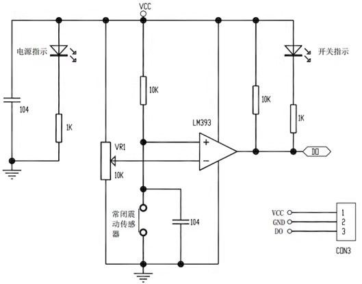 3、输出端可以与单片机直接相连,通过单片机来检测高低电平,由此来检测环境是否有震动,起到报警作用