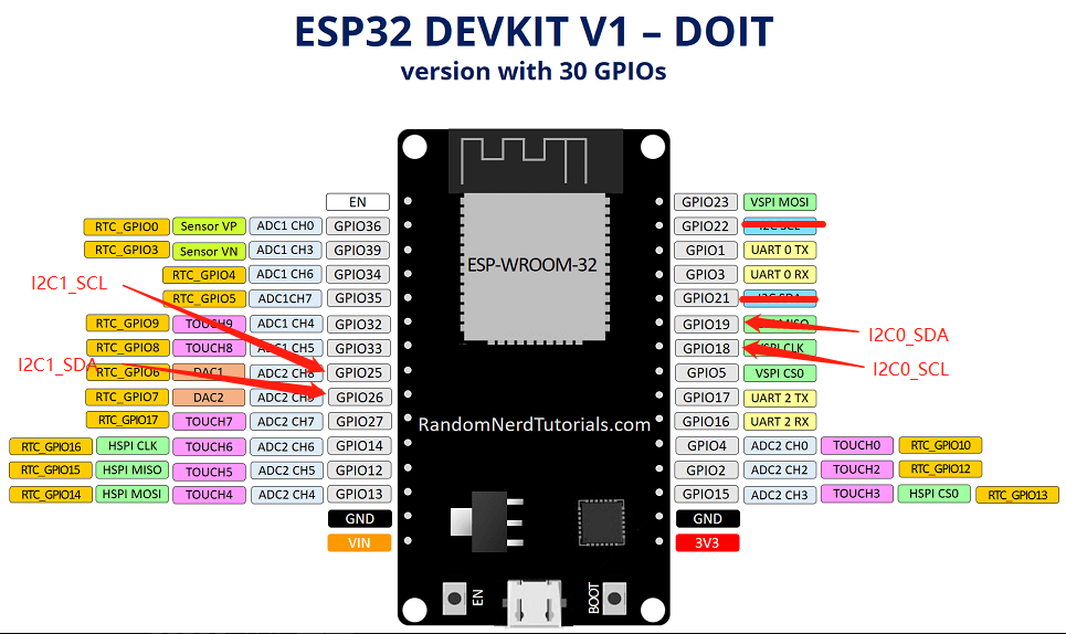 我们知道硬件 I2C 和软件 I2C 的区别在于,软件 I2C 是通过软件编程使 CPU 拉高拉低 SDA 和 SCL 引脚,模拟出 I2C 总线的;而硬件 I2C 则是使用 ESP32 内部的 I2C 硬件驱动器实现总线的读写。