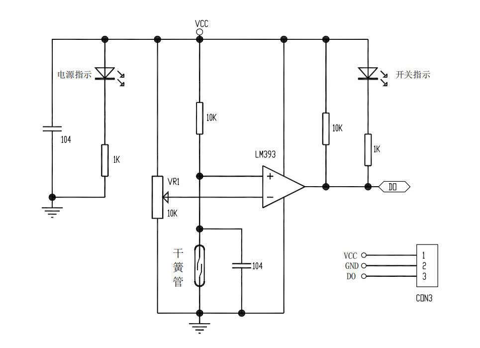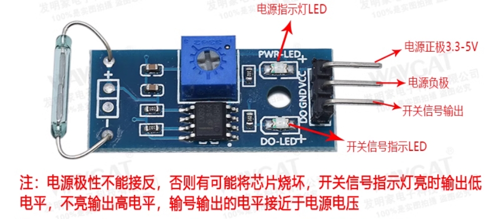 2.模块 DO 输出端可以单片机I/0 口直接相连,通过单片机可以检测干簧管的触发状态;