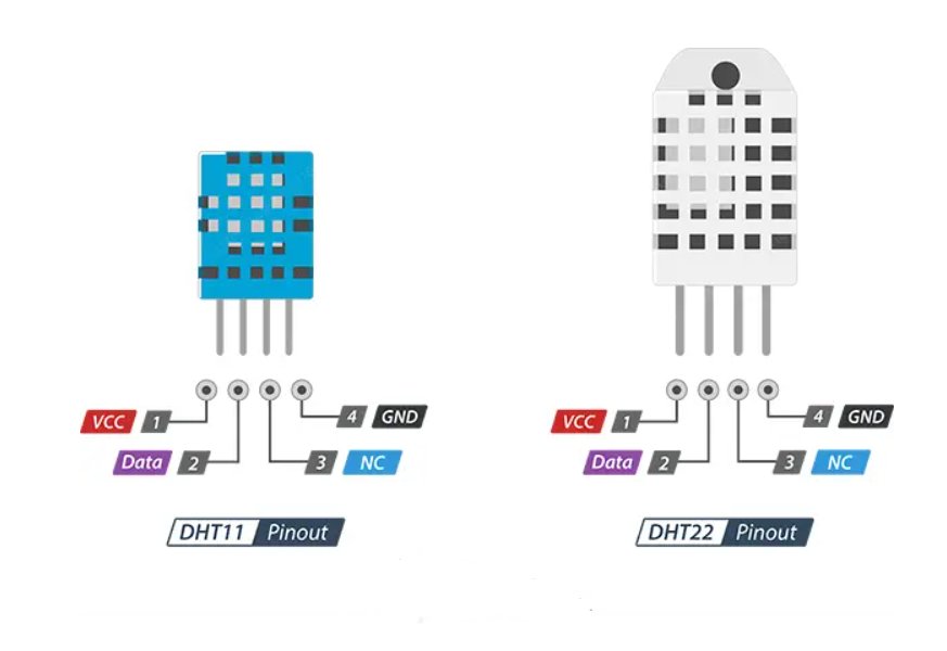 DHT11 和 DHT22 传感器的连接都相对简单。它们有四个引脚