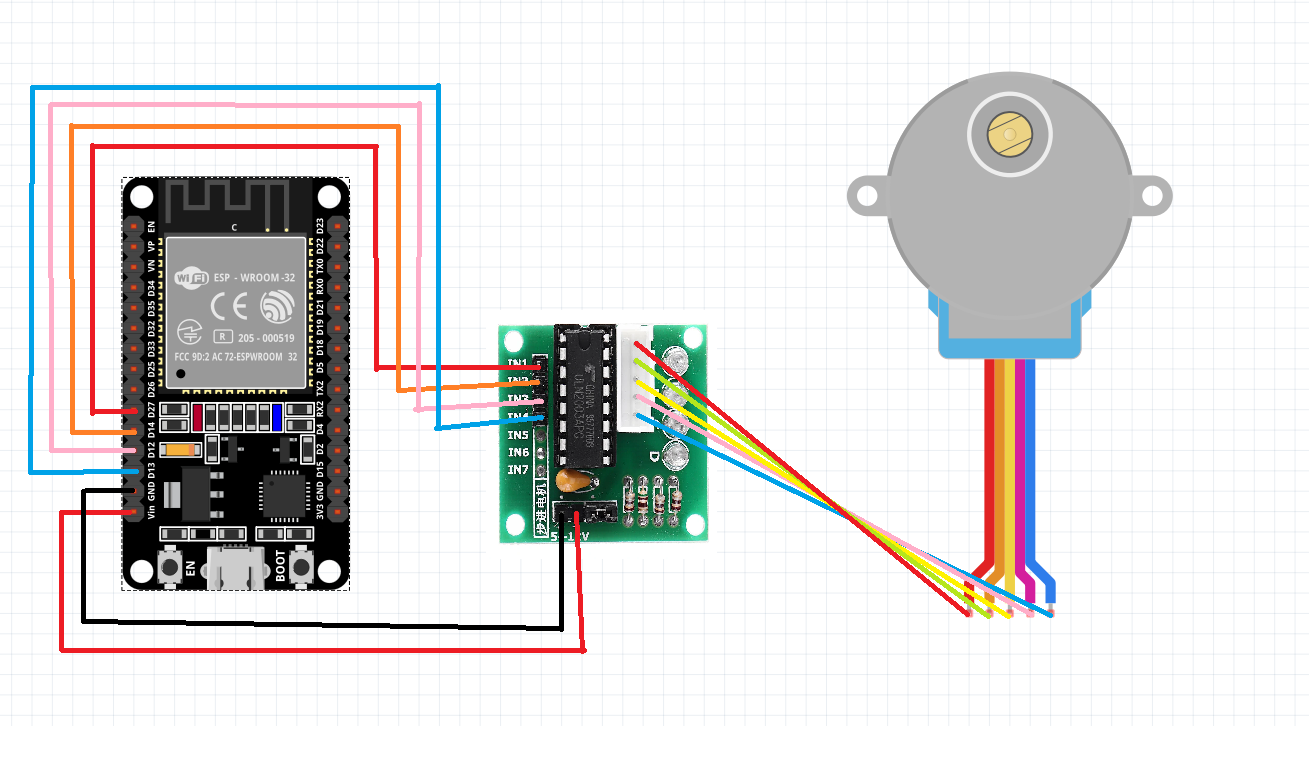 motor = Uln2003(pin1=Pin(13), pin2=Pin(12), pin3=Pin(14), pin4=Pin(27), delay=2, mode='HALF_STEP')